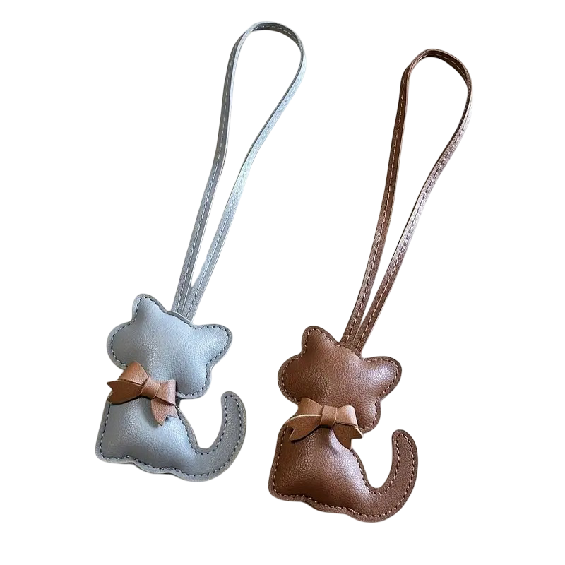 A cute gray cat-shaped charm with a bow for a playful touch.