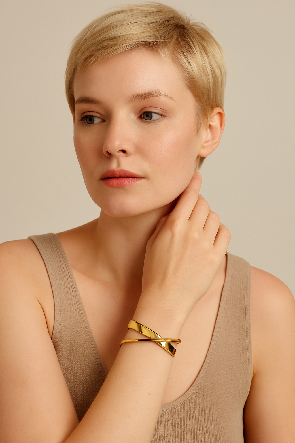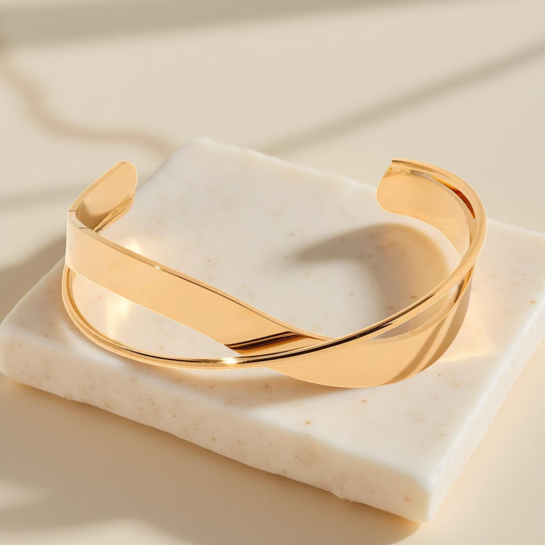 Like a ribbon frozen in motion, this high-shine cuff makes a bold and modern statement.