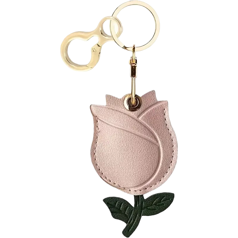 A delicate pink rose charm with a feminine touch. Designed with a discreet pocket that perfectly fits an AirTag. A stylish way to keep track of your belongings while adding a touch of elegance to your everyday essentials.